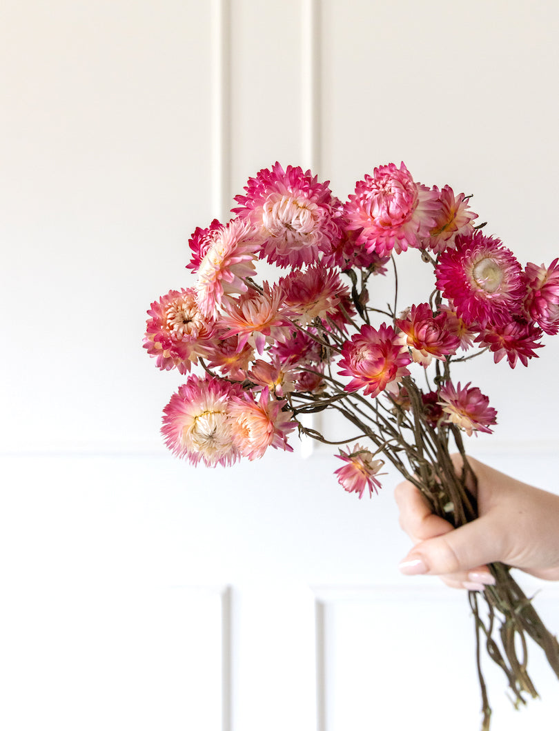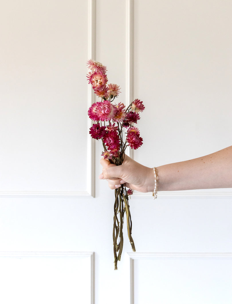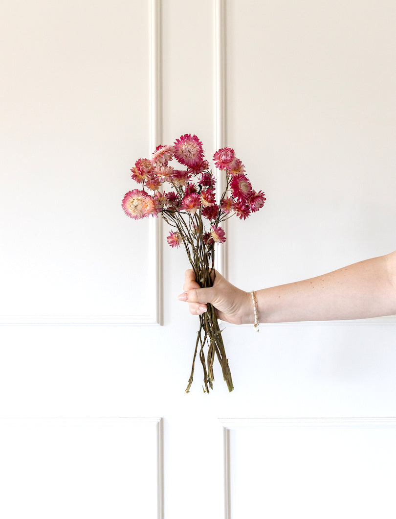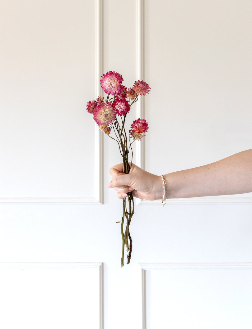 El Helichrysum Rosa tiene pequeñas flores redondeadas y un color delicado que aporta dulzura sin caer en lo cursi. Perfecto para dar un toque sutil y fresco a cualquier composición.