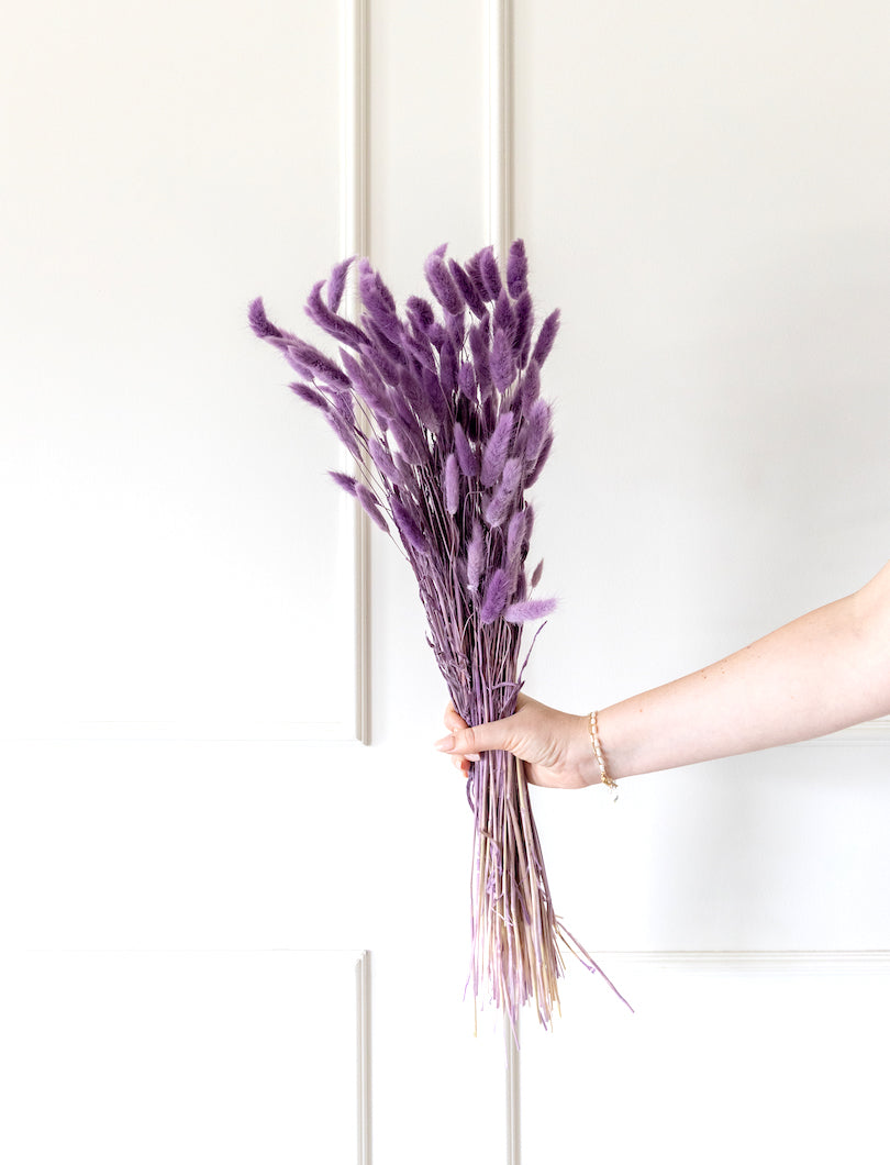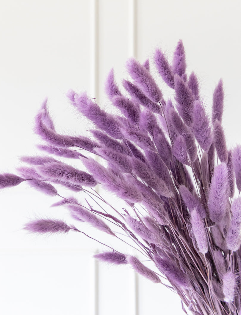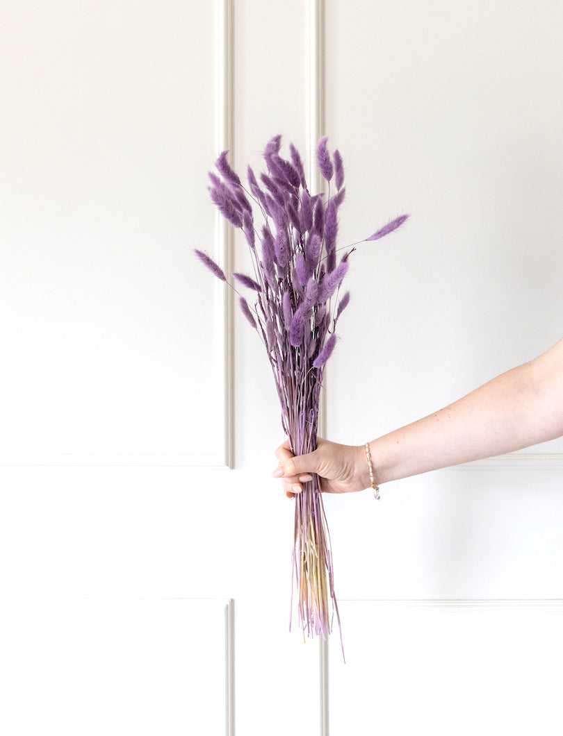 El Lagurus Lila combina su textura suave y esponjosa con un color delicado y original. Perfecto para añadir un toque diferente sin romper la armonía, ya sea en ramos coloridos o composiciones más suaves.