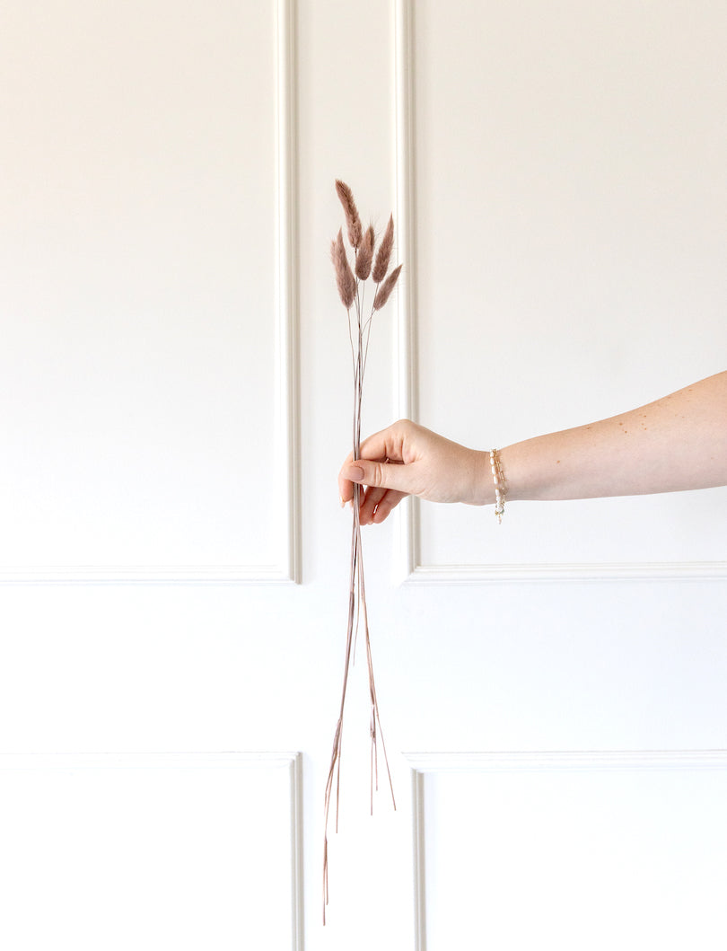 El Lagurus Terracota combina su textura suave con un tono cálido y terroso que aporta carácter. Perfecto para composiciones con personalidad o para dar un toque distinto a arreglos más neutros.