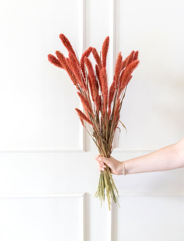 Con un tono coral suave y luminoso, esta setaria añade un toque fresco y vibrante a cualquier composición floral. Ideal para crear contraste en arreglos neutros o dar un punto de color a ramos y centros con estilo boho o primaveral. Su textura ligera y forma de espiga la hacen perfecta tanto para jarrones pequeños como para detalles decorativos con personalidad.