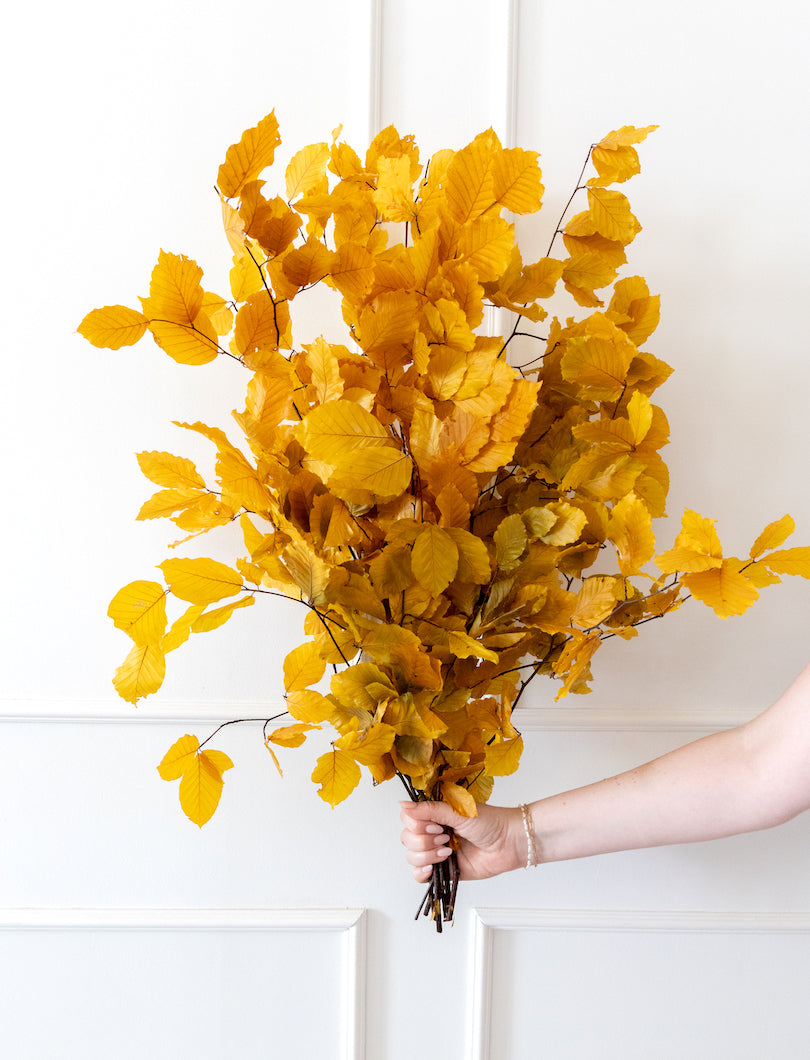 Con sus hojas y su tono ocre dorado, los tallos de Haya seca aportan calidez, textura y un toque otoñal a cualquier composición floral. Ideal para arreglos con volumen, centros de mesa o estilismos de inspiración natural, combina muy bien con pampas, avena y tonos tierra. Su color vibrante y acabado mate la convierten en una pieza decorativa con personalidad.