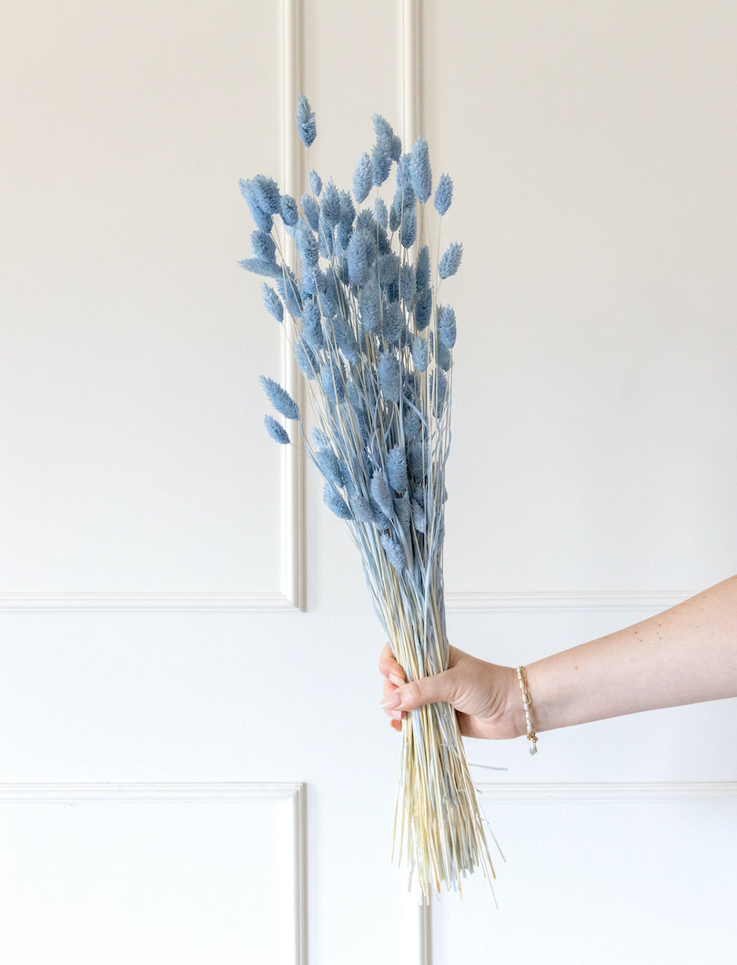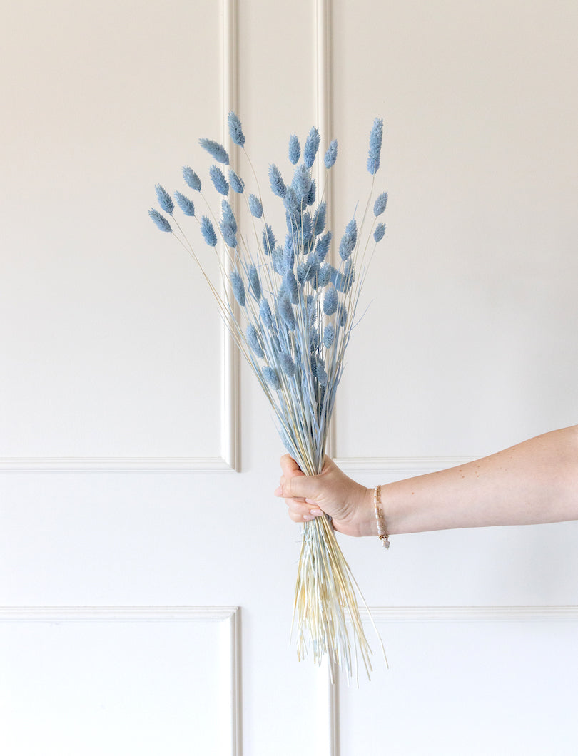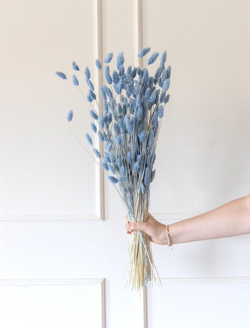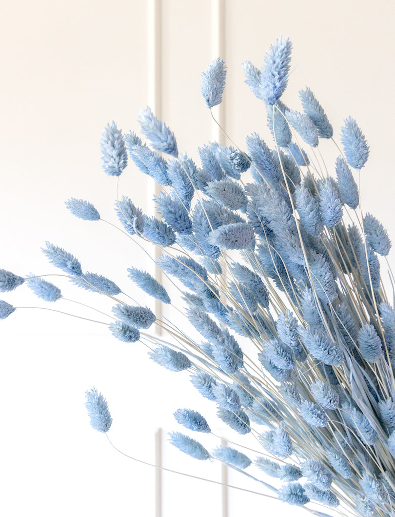 Compacto y estructurado, el Phalaris azul aporta un toque de color fresco y equilibrado a cualquier arreglo floral. Su forma redondeada y su tono azul vibrante lo hacen ideal para dar contraste en composiciones modernas, infantiles o primaverales. Funciona muy bien con blancos y verdes suaves.