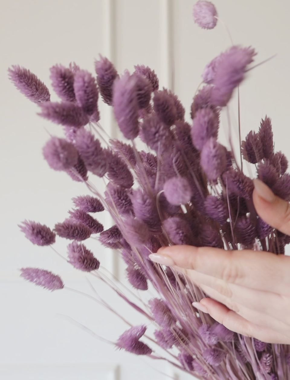 El Phalaris Lavanda, tiene una textura suave y un aspecto muy decorativo. Sus espigas aportan un toque cálido y campestre, ideal para ramos con aire relajado o para dar un detalle especial a cualquier espacio.
