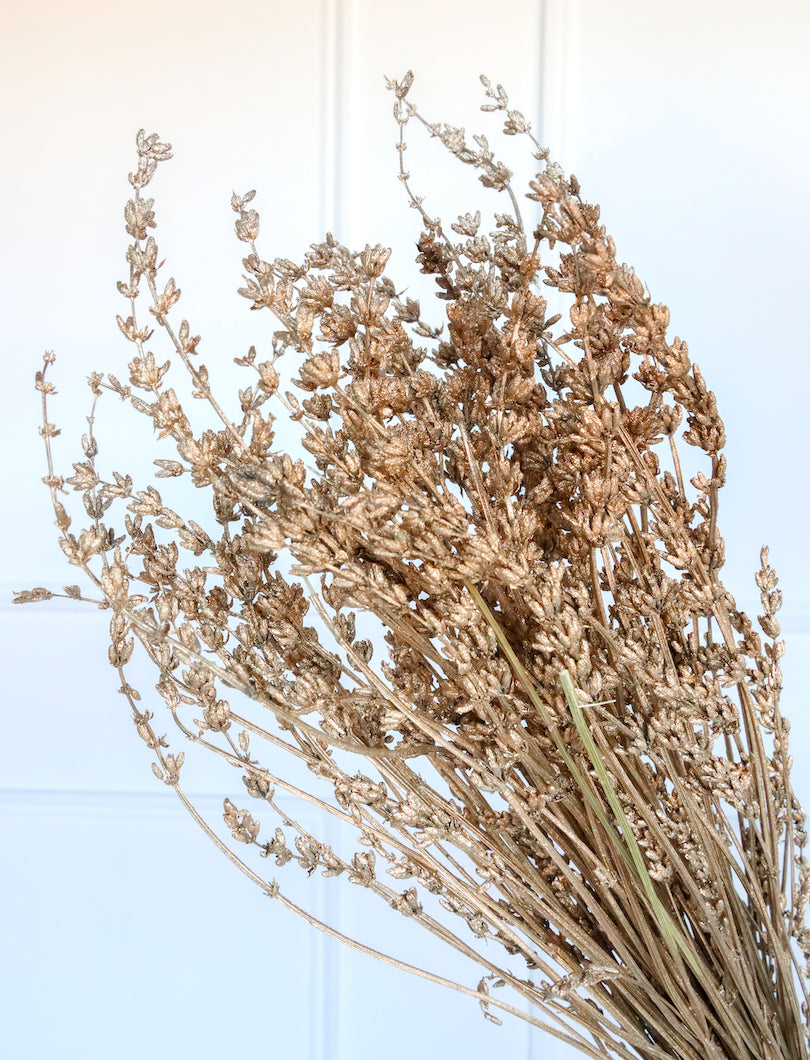 La Lavanda preservada dorada es perfecta para aportar un toque de luz y elegancia a tus composiciones. Sus espigas, teñidas en un delicado tono oro, conservan la textura y el encanto natural de la lavanda, pero con un acabado brillante que la convierte en protagonista de ramos, coronas decorativas y centros de mesa. Ideal para decoraciones festivas, bodas, Navidad o para dar un punto sofisticado a cualquier rincón de casa.