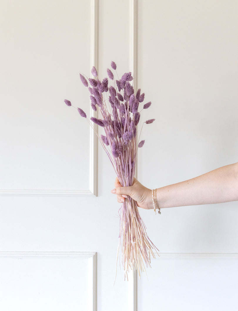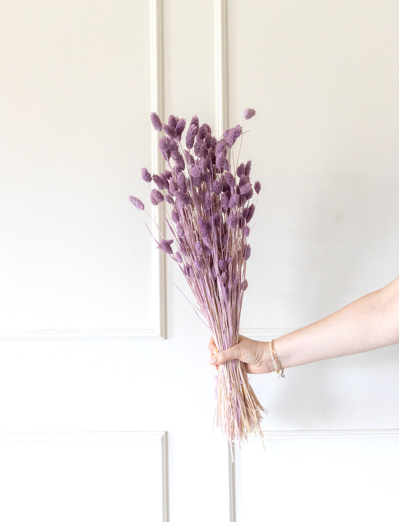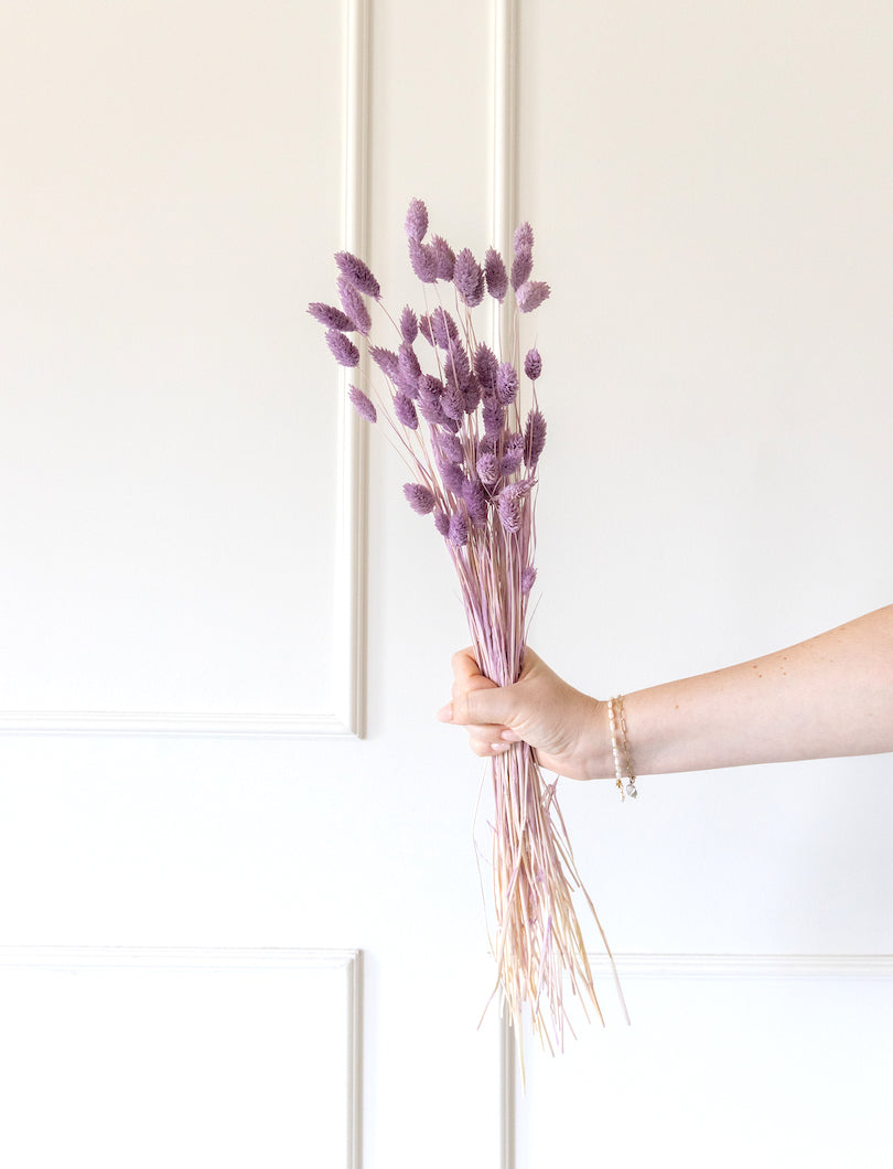 El Phalaris Lavanda, tiene una textura suave y un aspecto muy decorativo. Sus espigas aportan un toque cálido y campestre, ideal para ramos con aire relajado o para dar un detalle especial a cualquier espacio.