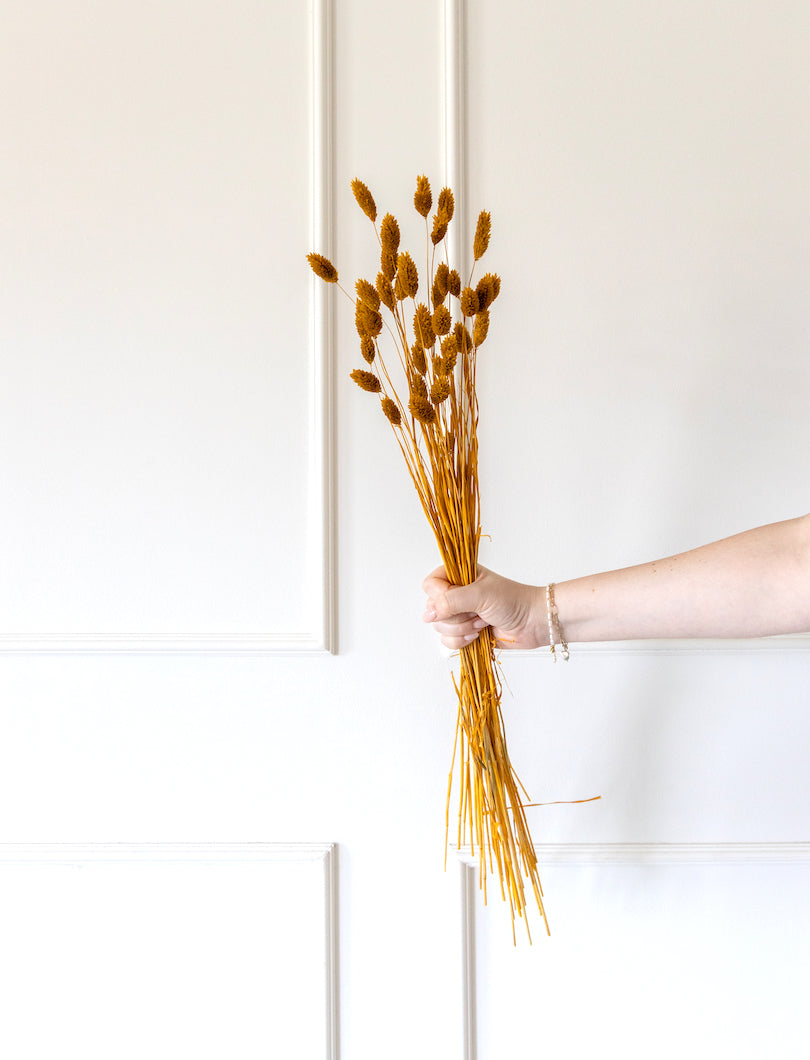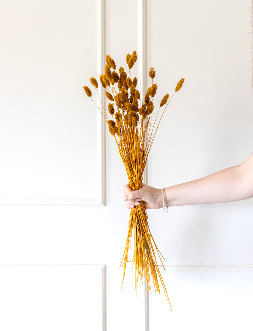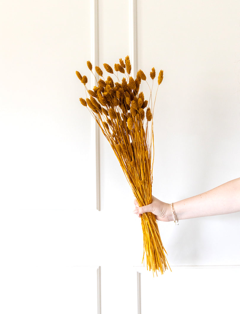 El Phalaris Ocre, tiene una textura suave y un aspecto muy decorativo. Sus espigas aportan un toque cálido y campestre, ideal para ramos con aire relajado o para dar un detalle especial a cualquier espacio.