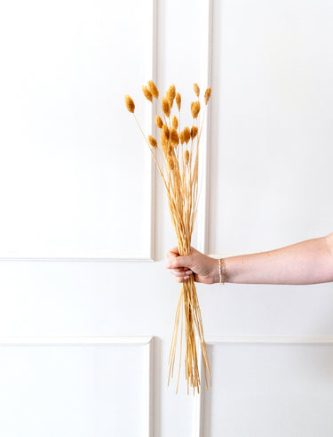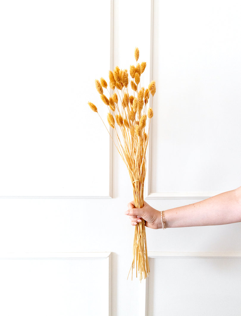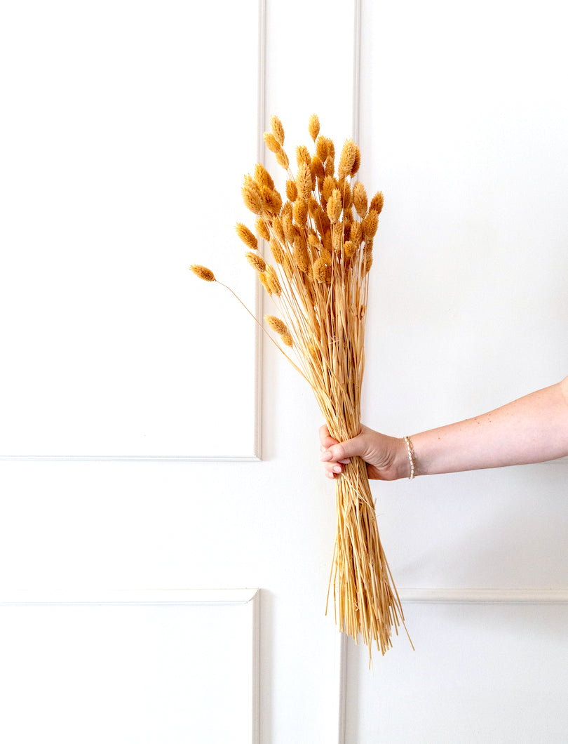 El Phalaris Salmón, tiene una textura suave y un aspecto muy decorativo. Sus espigas aportan un toque cálido y campestre, ideal para ramos con aire relajado o para dar un detalle especial a cualquier espacio.