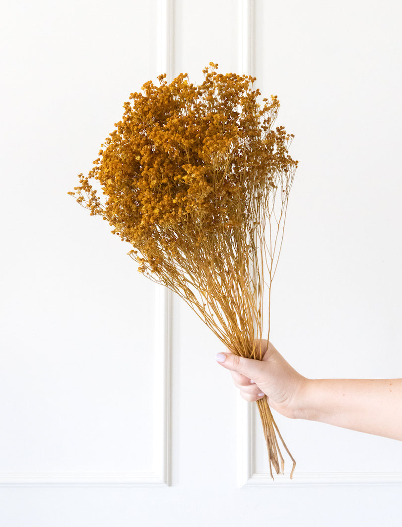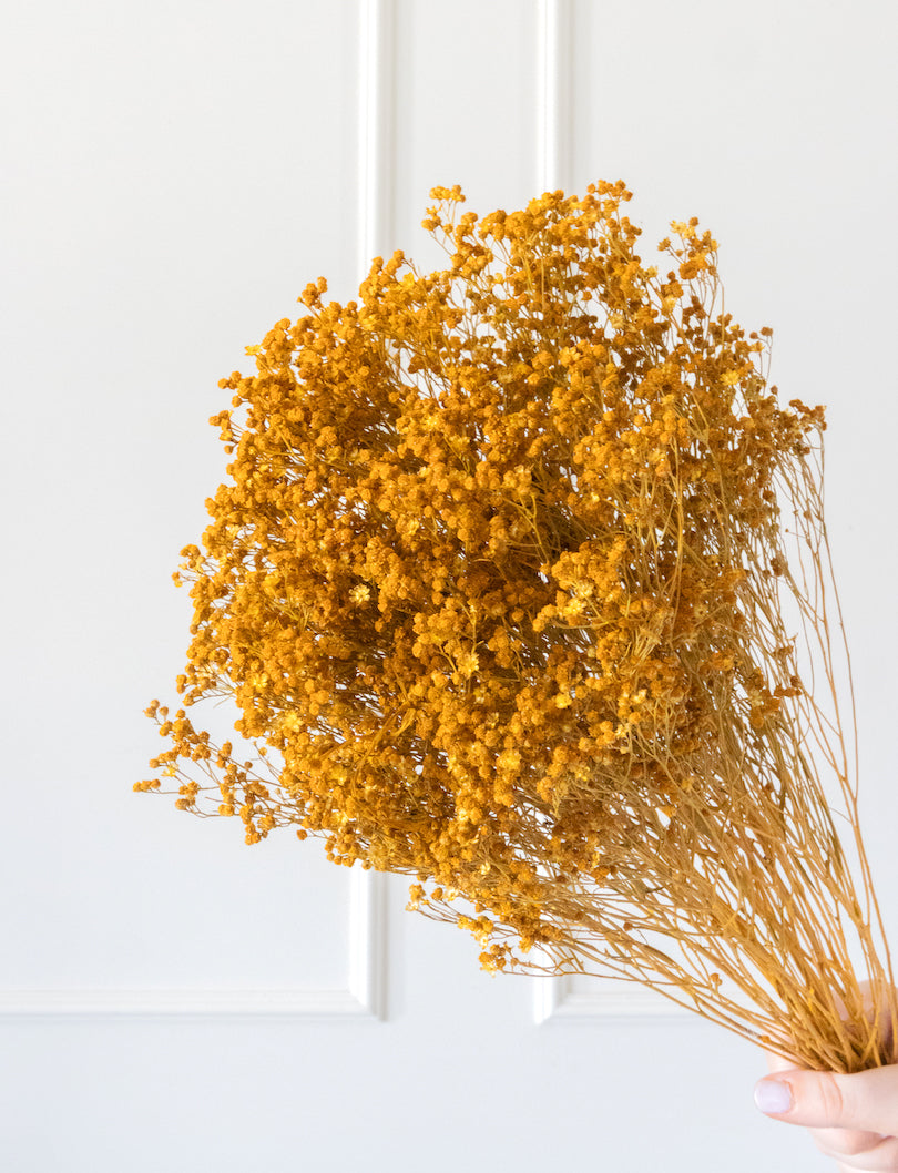 El Broom Ocre destaca por su textura fina y su color cálido, que recuerda a los tonos de la tierra. Aporta volumen sin recargar y combina muy bien con flores neutras o composiciones en tonos otoñales.
