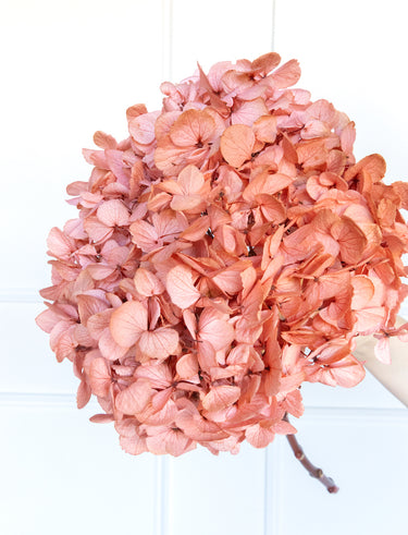 Nuestra hortensia preservada color salmón aporta un toque dulce y sofisticado a cualquier composición. Sus voluminosas flores, en un tono salmón suave y cálido, son perfectas como protagonista de ramos, centros de mesa, arreglos para bodas o para lucir sola en un jarrón especial. Su textura esponjosa y su color delicado encajan muy bien en decoraciones románticas, estilos boho y espacios de inspiración natural.