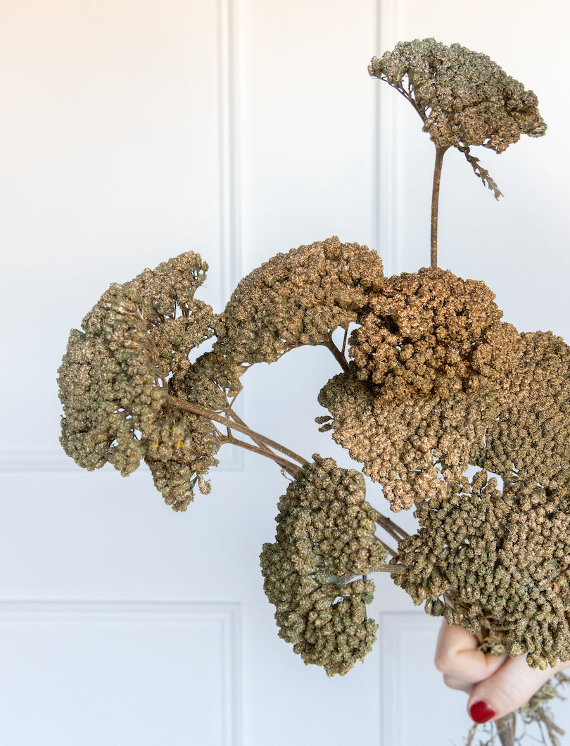Aporta un toque cálido y luminoso a cualquier composición. Sus cabezas florales compactas y su tono dorado suave dan cuerpo sin recargar, creando arreglos con un aire natural y elegante. Queda ideal combinada con tonos neutros o tierra, o como acento de color en ramos más suaves.