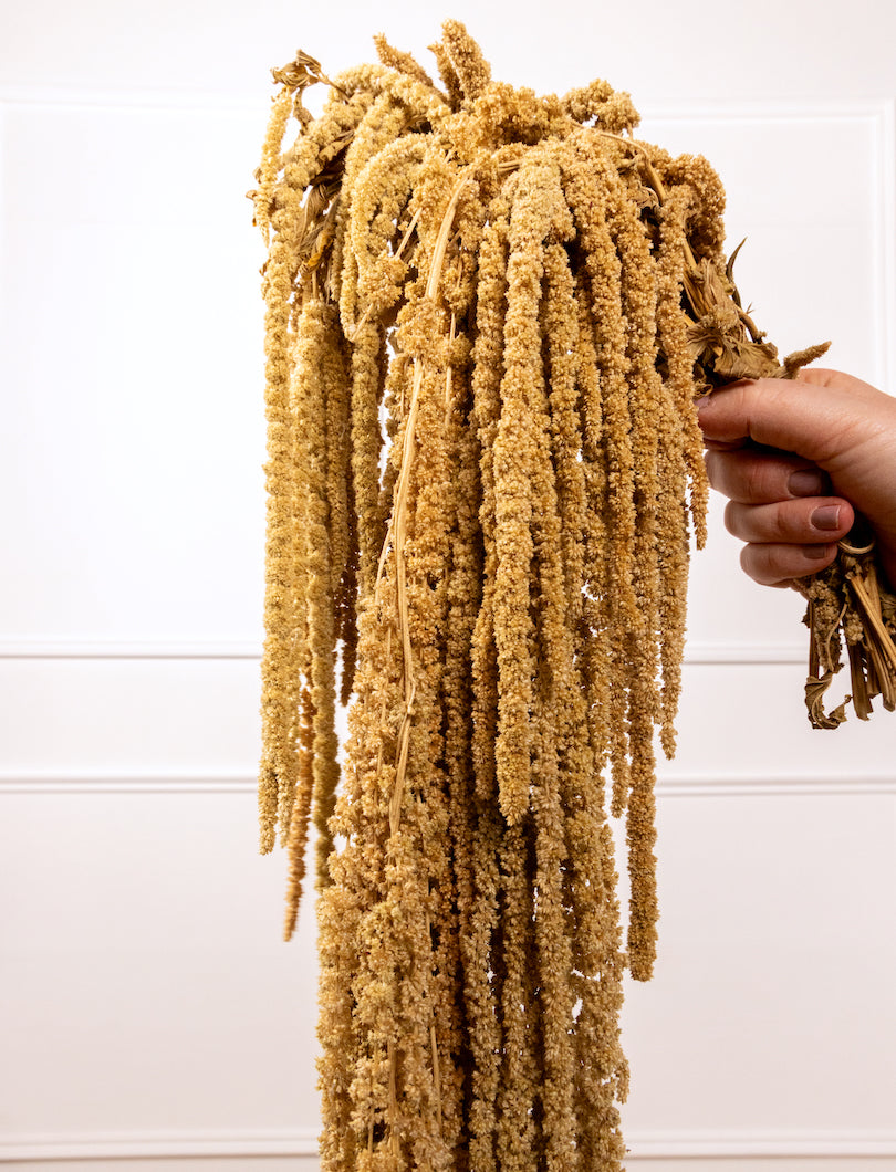 El Amaranthus natural aporta movimiento, textura y un estilo orgánico a cualquier ramo o composición floral. Su tono natural resalta su belleza silvestre y versátil, combinando fácilmente con flores neutras, secas o en tonos cálidos. Es ideal para crear arreglos equilibrados con un acabado natural y elegante.
