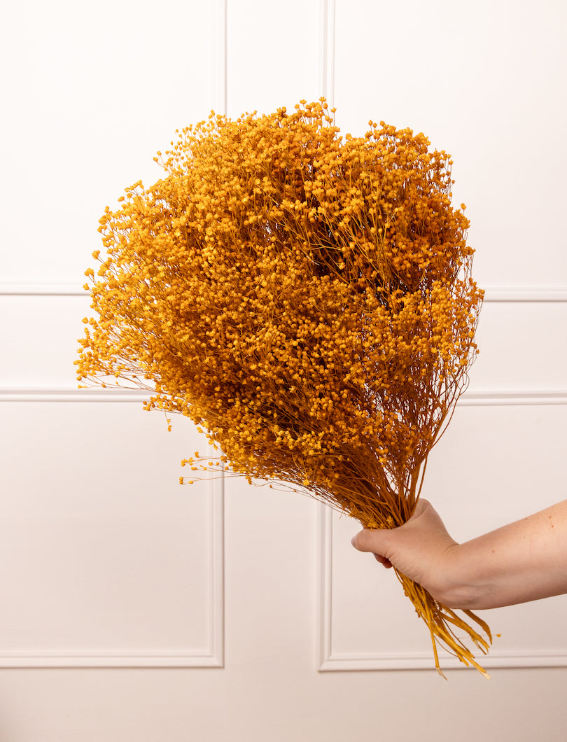 El Broom Ocre destaca por su textura fina y su color cálido, que recuerda a los tonos de la tierra. Aporta volumen sin recargar y combina muy bien con flores neutras o composiciones en tonos otoñales.