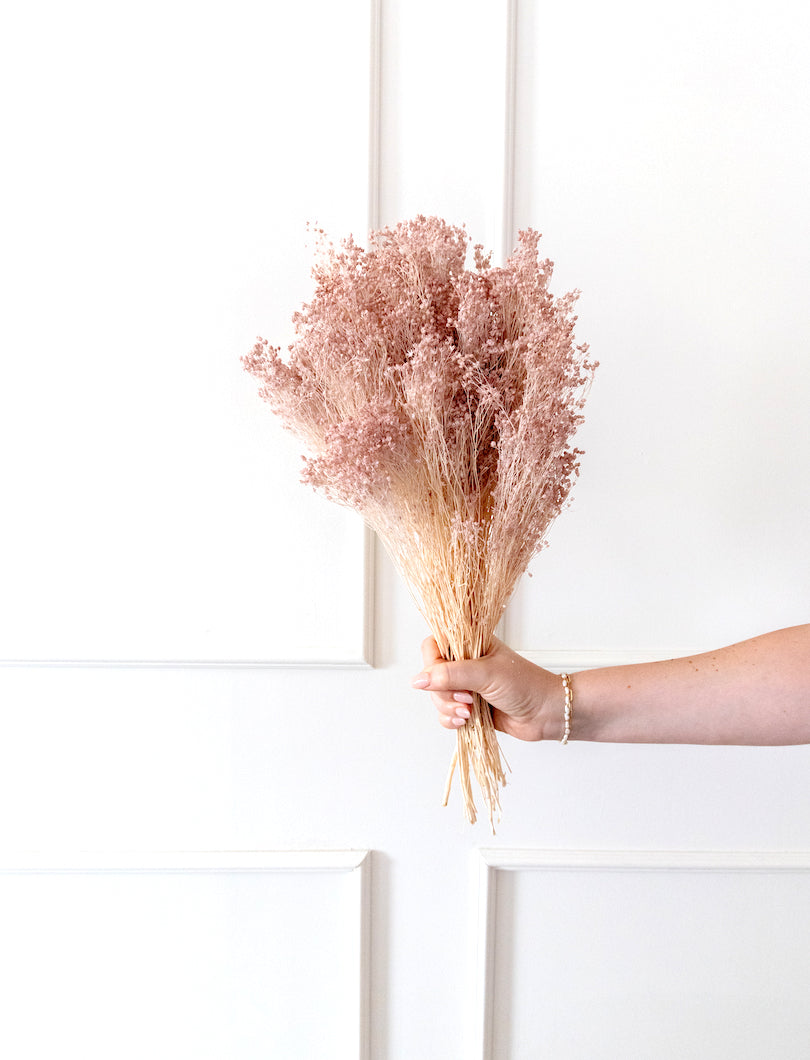 El Broom Rosa destaca por su textura fina y su color cálido, que recuerda a los tonos de la tierra. Aporta volumen sin recargar y combina muy bien con flores neutras o composiciones en tonos pasteles.