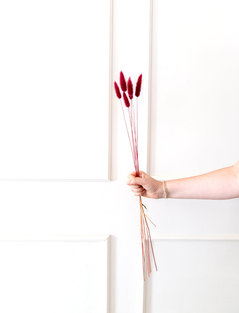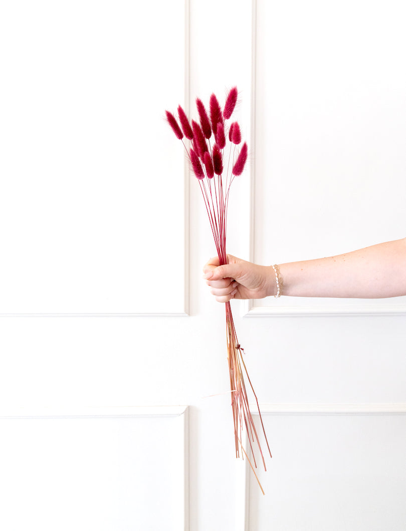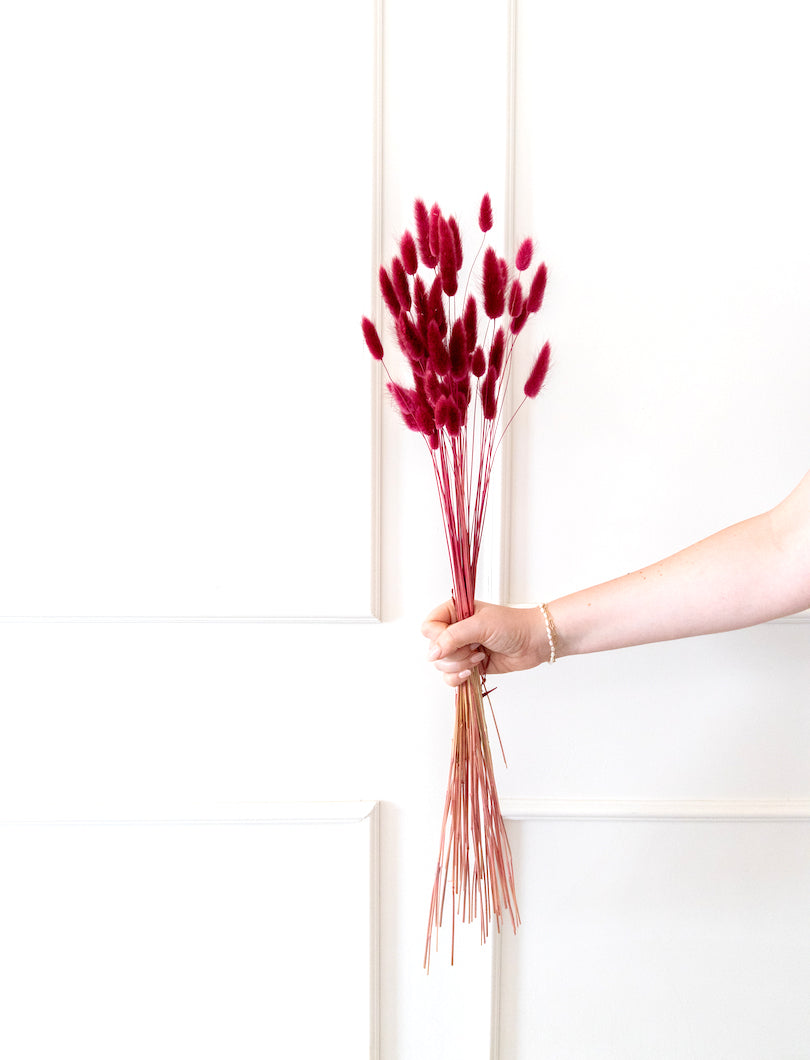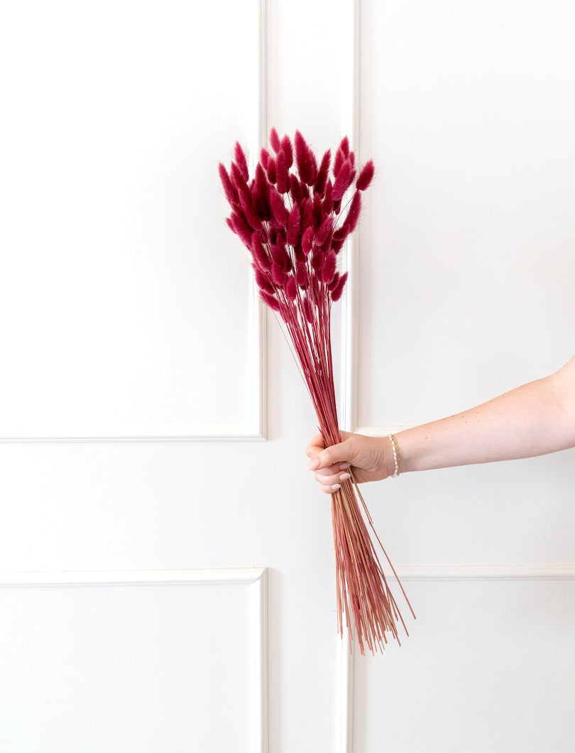 El Lagurus Burdeos tiene un color profundo y envolvente que aporta calidez y personalidad. Su textura suave lo convierte en un complemento ideal para ramos con carácter o composiciones en tonos otoñales.