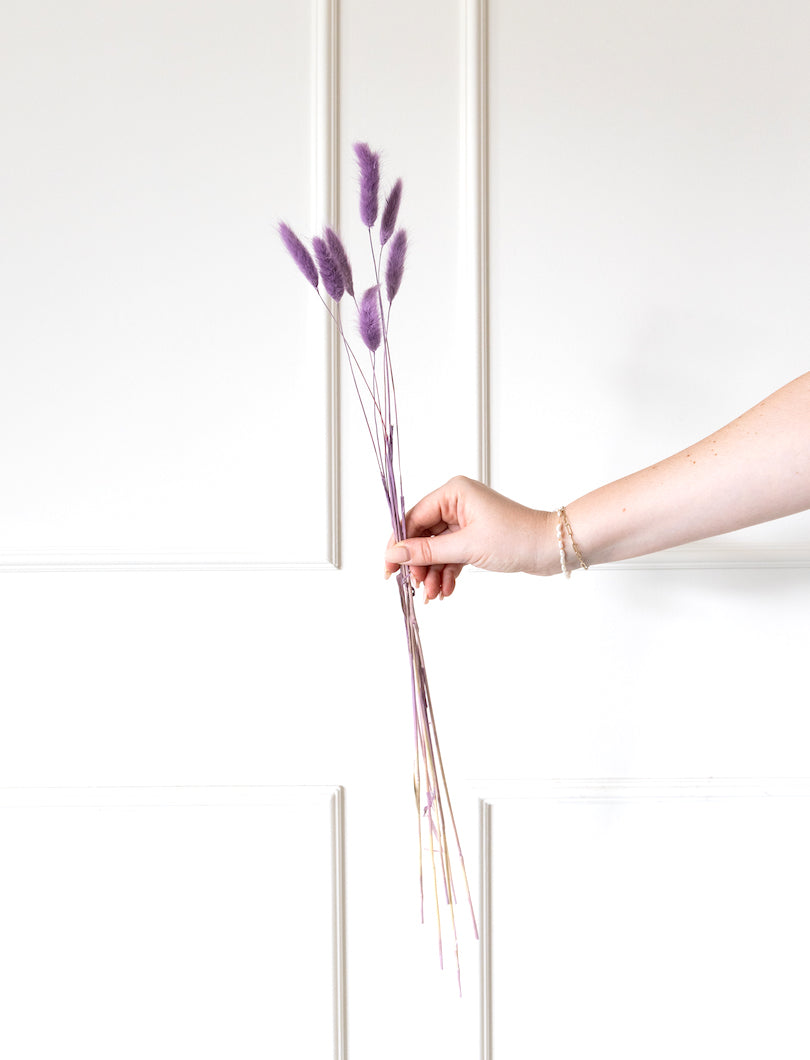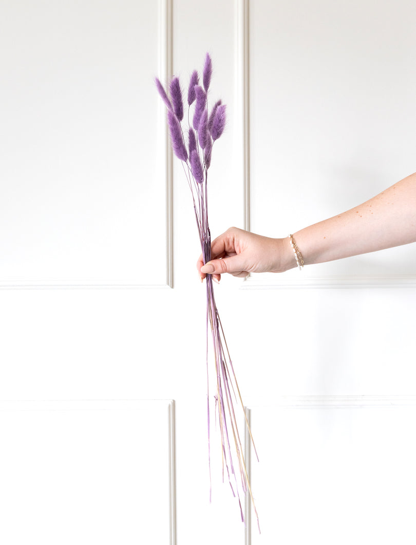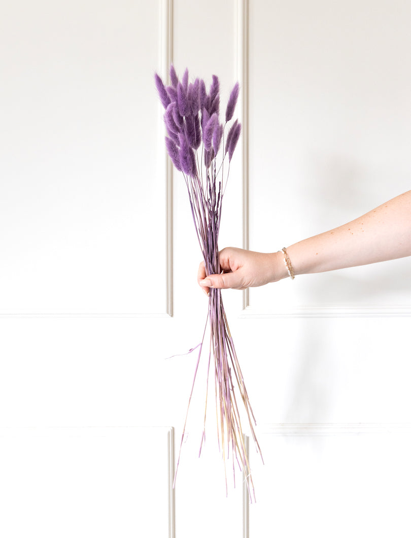 El Lagurus Lila combina su textura suave y esponjosa con un color delicado y original. Perfecto para añadir un toque diferente sin romper la armonía, ya sea en ramos coloridos o composiciones más suaves.