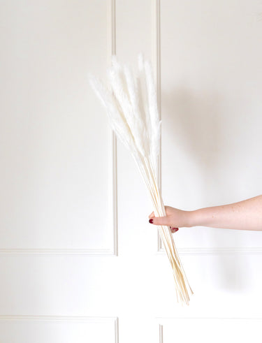 La Mini Pampa Blanca tiene una textura suave y esponjosa que aporta ligereza y movimiento. Su tono claro la hace muy versátil, ideal para arreglos minimalistas o para dar un toque natural sin recargar.