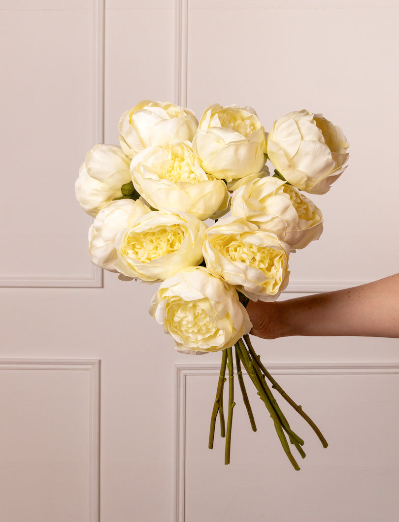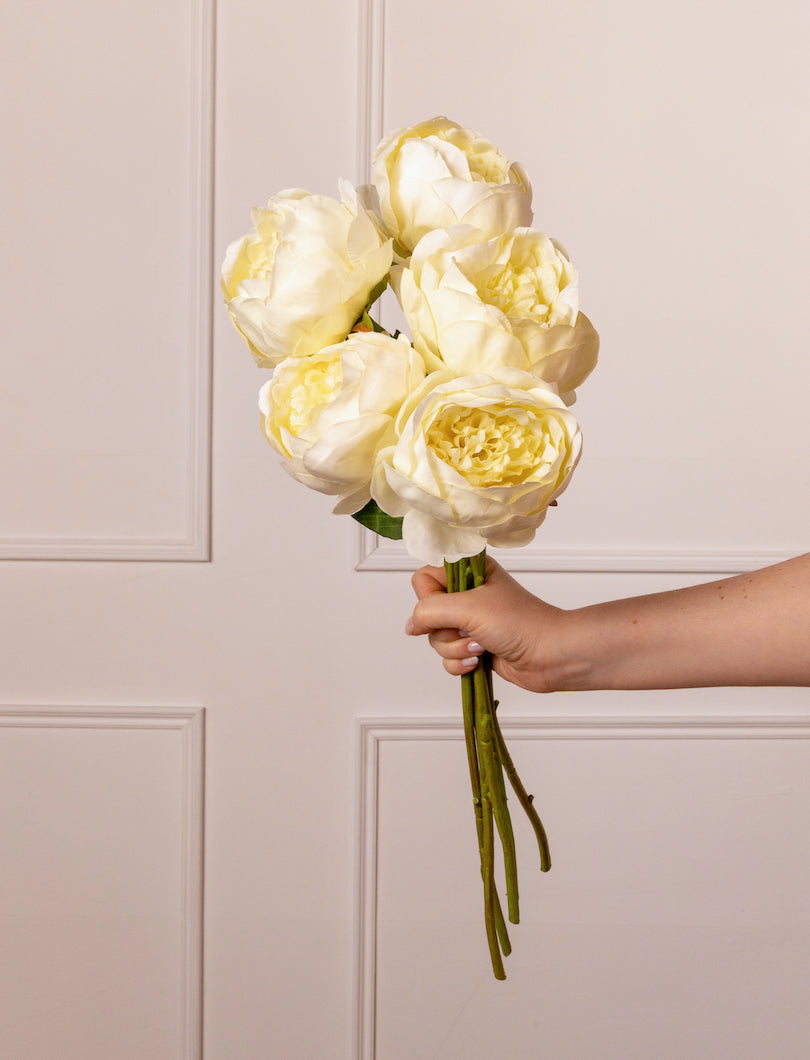 Tiene acabado ultra realista y tacto real, con pétalos suaves y con volumen, para que se vea (y se sienta) como una Peonía recién cortada. Perfecta como flor protagonista o para mezclar con blancos, rosas y verdes si quieres un ramo delicado y muy “Bahay”.